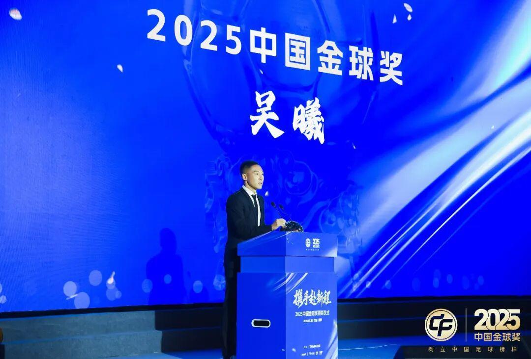 37岁的吴曦从武磊手中接过2025中国金球奖的奖杯。武磊是这个奖的五届得主——这一次,他站在台上,把奖杯递给了别人。台下坐着的,不只是中国足球圈的人——还有来自全国数十家媒体的记者,以及密切关注这场盛典的南京市政府相关人员。