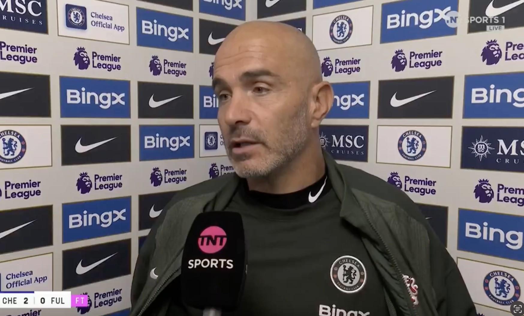 英超第3轮,切尔西主场2-0击败富勒姆,赛后,蓝军主帅马雷斯卡接受了TNT体育的采访。